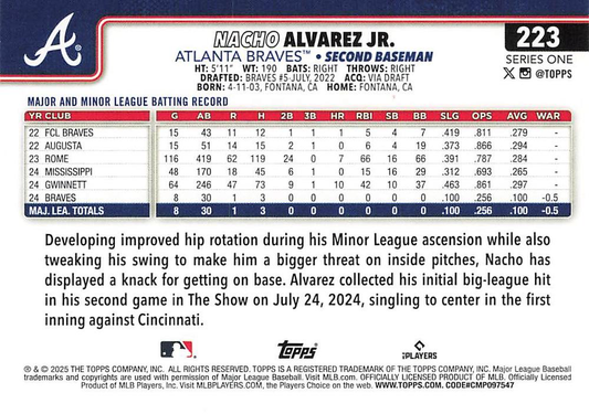 2025 Topps Series 1 Nacho Alvarez Jr. RC Atlanta Braves #223