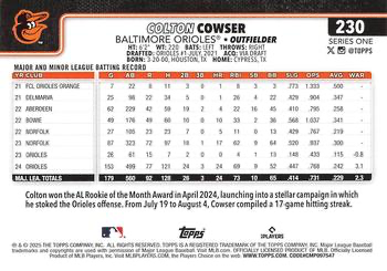 2025 Topps Series 1 Colton Cowser Baltimore Orioles #230