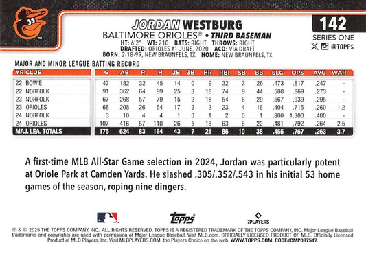2025 Topps Series 1 Jordan Westburg Future Stars Baltimore Orioles #142