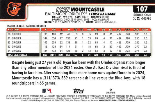2025 Topps Series 1 Ryan Mountcastle Baltimore Orioles #107