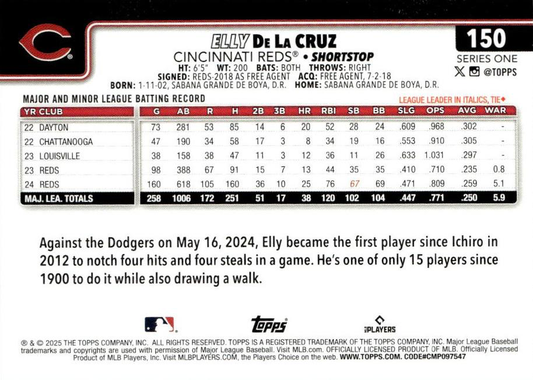 2025 Topps Series 1 Elly De La Cruz Future Stars Cincinnati Reds #150