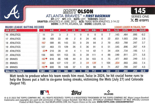 2025 Topps Series 1 Matt Olson Atlanta Braves #145