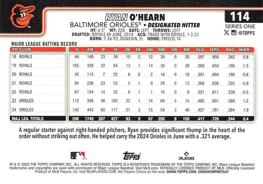 2025 Topps Series 1 Ryan O'Hearn Baltimore Orioles #114