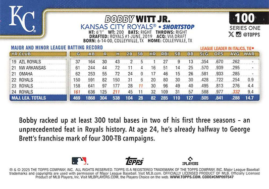 2025 Topps Series 1 Bobby Witt Jr. Kansas City Royals #100