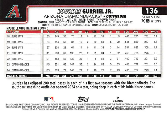 2025 Topps Series 1 Lourdes Gurriel Jr. Arizona Diamondbacks #136