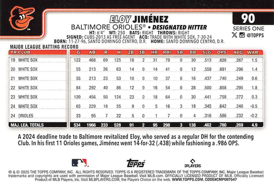 2025 Topps Series 1 Eloy Jiménez Baltimore Orioles #90