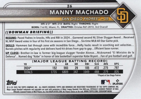 2025 Topps Bowman Manny Machado San Diego Padres #26