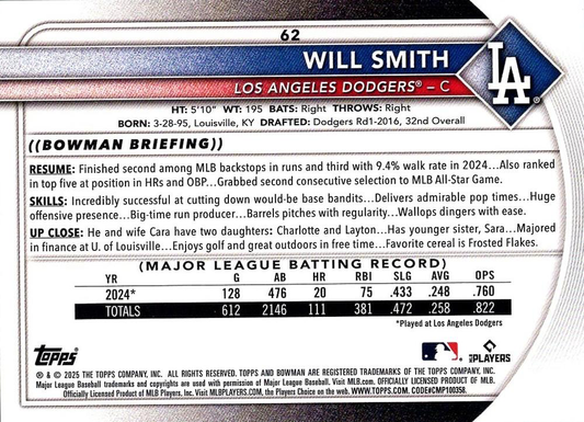 2025 Topps Bowman Will Smith Los Angeles Dodgers #62