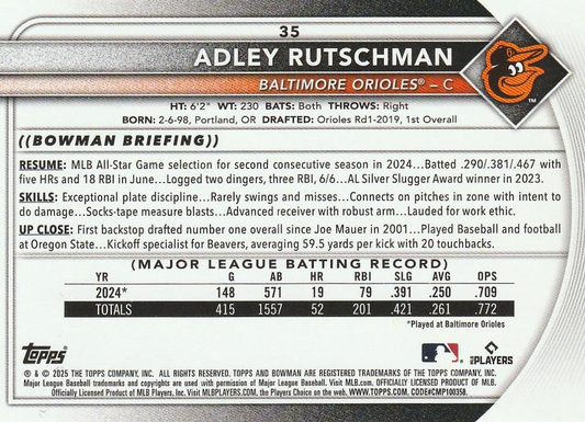 2025 Topps Bowman Adley Rutschman Baltimore Orioles #35
