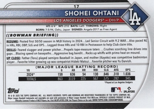2025 Topps Bowman Shohei Ohtani Los Angeles Dodgers #17
