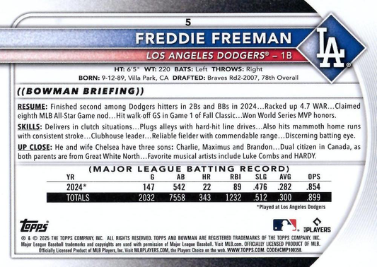 2025 Topps Bowman Freddie Freeman Los Angeles Dodgers #5