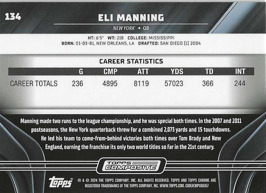 2023 Topps Composite Football Eli Manning Chrome Black #134 New York Giants