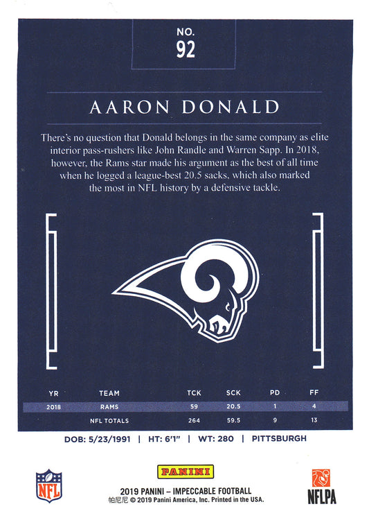 2019 Panini Impeccable Aaron Donald /75 #92 Los Angeles Rams