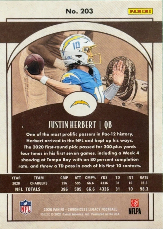 2020 Panini Chronicles Legacy Justin Herbert RC #203 Los Angeles Chargers