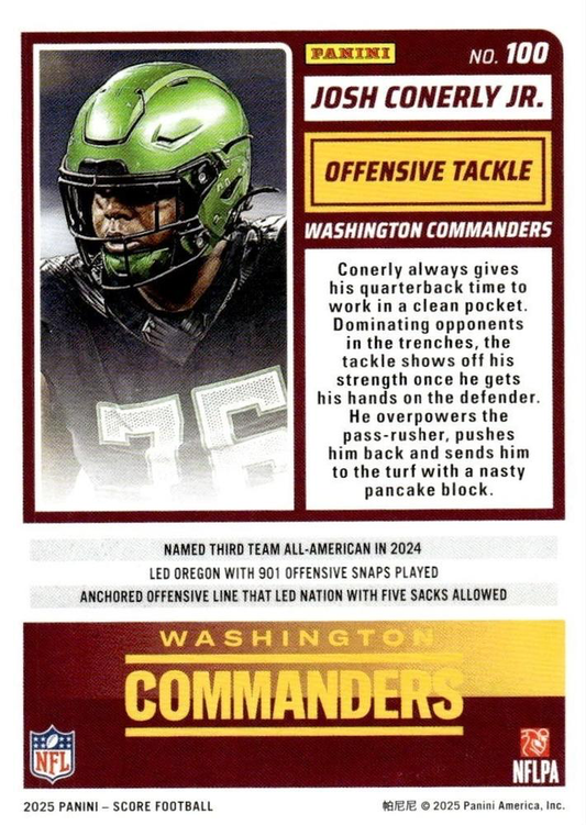 2025 Panini Score Josh Conerly Jr. RC #100 Washington Commanders