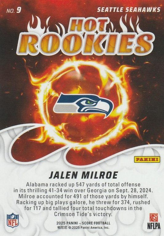 2025 Panini Score Hot Rookies Jalen Milroe #9 Seattle Seahawks