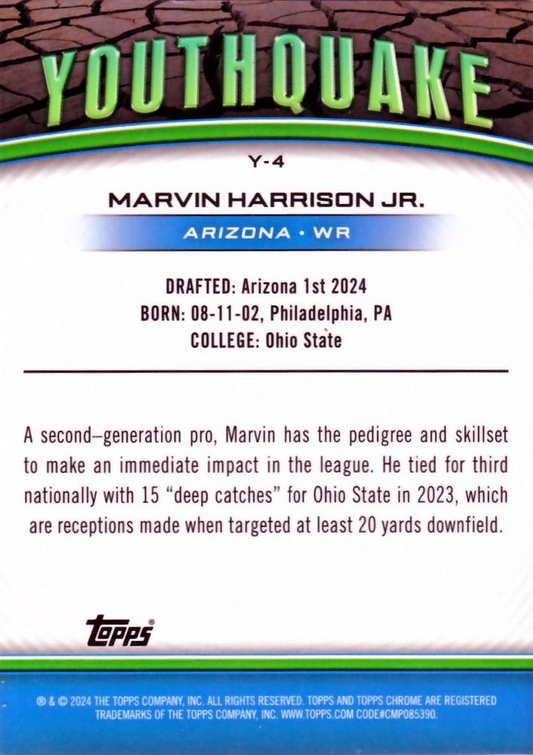 2024 Topps Chrome Youthquake Marvin Harrison Jr. #Y-4 Arizona Cardinals