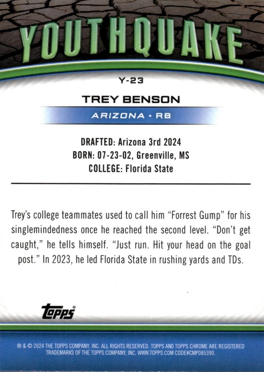 2024 Topps Chrome Youthquake X-Fractor Trey Benson #Y-23 Arizona Cardinals