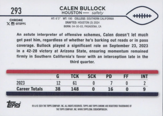2024 Topps Chrome Football X- Fractor Calen Bullock RC #293 Houston Texans