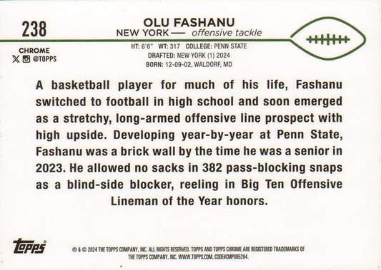 2024 Topps Chrome Football Olu Fashanu RC #238 New York Jets
