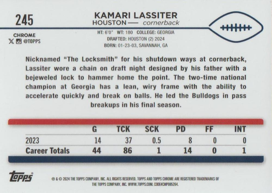 2024 Topps Chrome Football Kamari Lassiter RC #245 Houston Texans
