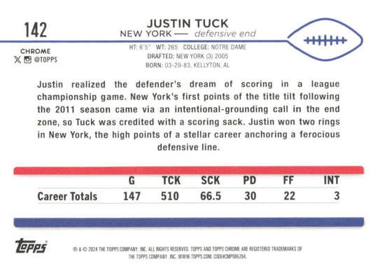 2024 Topps Chrome Football Justin Tuck #142 New York Giants