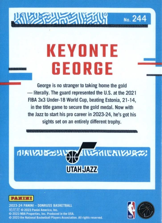2023 Panini Donruss Keyonte George Rated Rookie #244 Utah Jazz