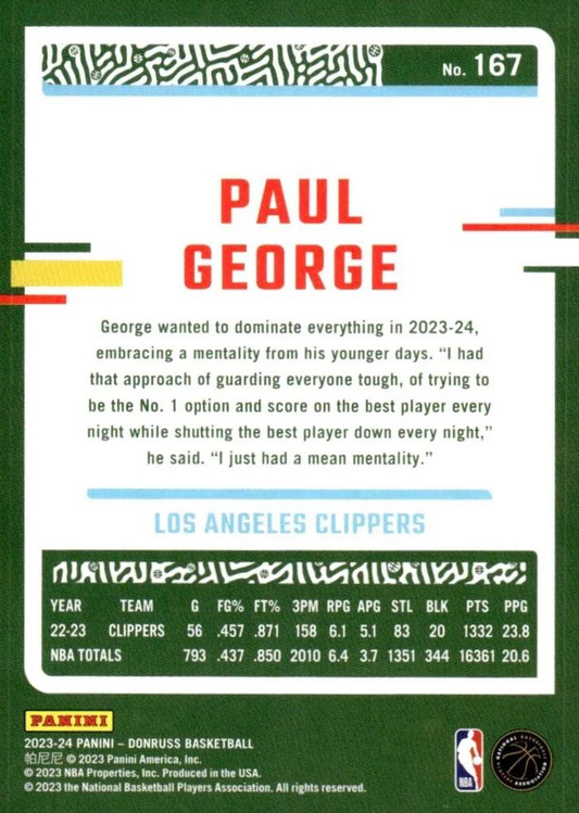 2023 Panini Donruss Paul George #167 Los Angeles Clippers