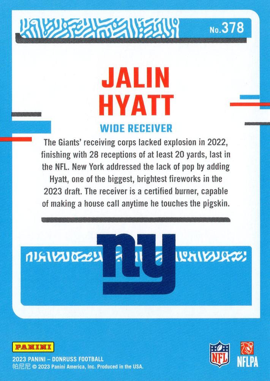 2023 Panini Donruss Rated Rookie Jalin Hyatt RC #378 New York Giants