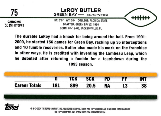 2024 Topps Chrome Football LeRoy Butler #75 Green Bay Packers
