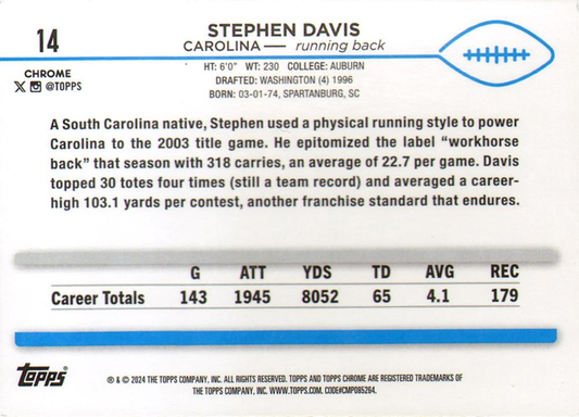 2024 Topps Chrome Football Stephen Davis #14 Carolina Panthers