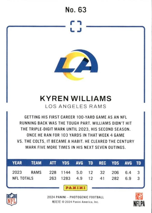 2024 Panini Photogenic Kyren Williams #63 Los Angeles Rams