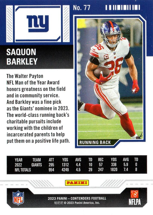 2023 Panini Contenders Saquon Barkley New York Giants #77