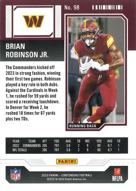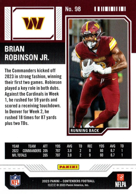 2023 Panini Contenders Brian Robinson Jr. Washington Commanders #98