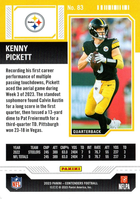 2023 Panini Contenders Kenny Pickett Pittsburgh Steelers #83