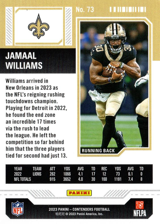 2023 Panini Contenders Jamaal Williams New Orleans Saints #73