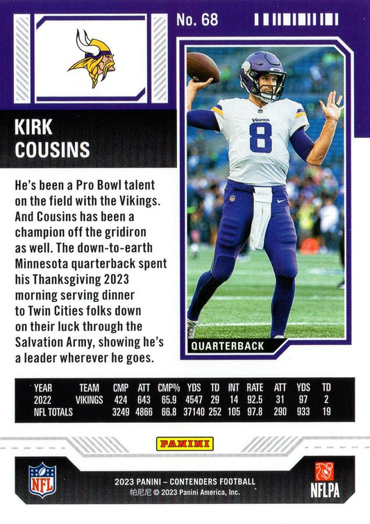 2023 Panini Contenders Kirk Cousins Minnesota Vikings #68