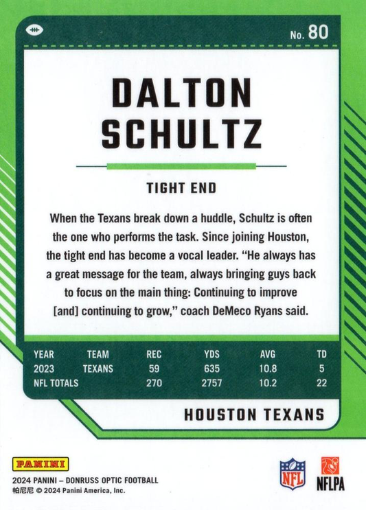 2024 Donruss Optic Football Dalton Schultz Houston Texans #80