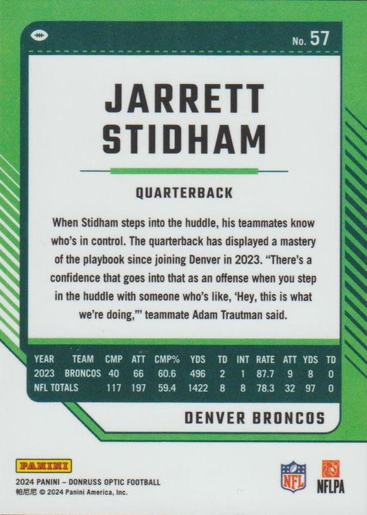 2024 Donruss Optic Football Jarrett Stidham Denver Broncos #57