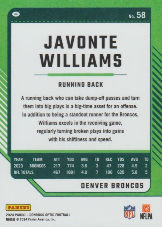 2024 Donruss Optic Football Javonte Williams Denver Broncos #58