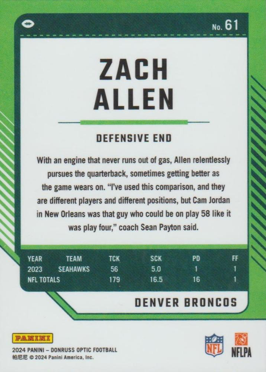 2024 Donruss Optic Football Zach Allen Denver Broncos #61