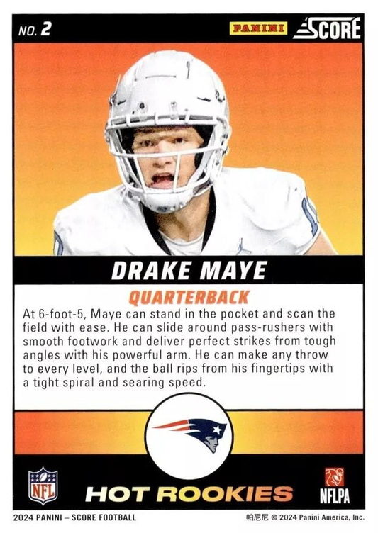 2024 Panini Score Football Hot Rookies Drake Maye New England Patriots #2 RC