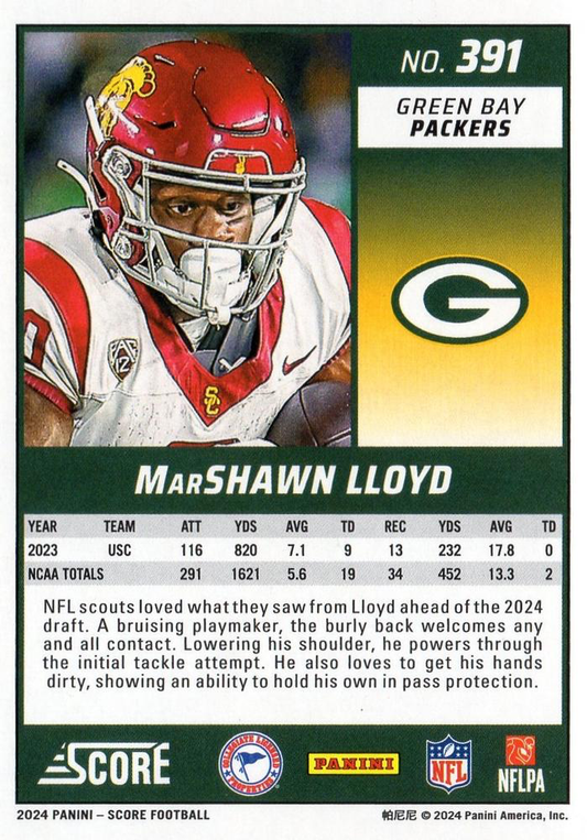 2024 Panini Score Football MarShawn Lloyd Green Bay Packers #391 RC
