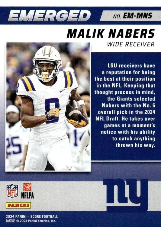 2024 Panini Score Football Emerged Malik Nabers New York Giants #EM-MNS RC