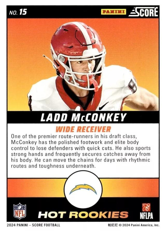 2024 Panini Score Football Hot Rookies Ladd McConkey Los Angeles Chargers #15 RC