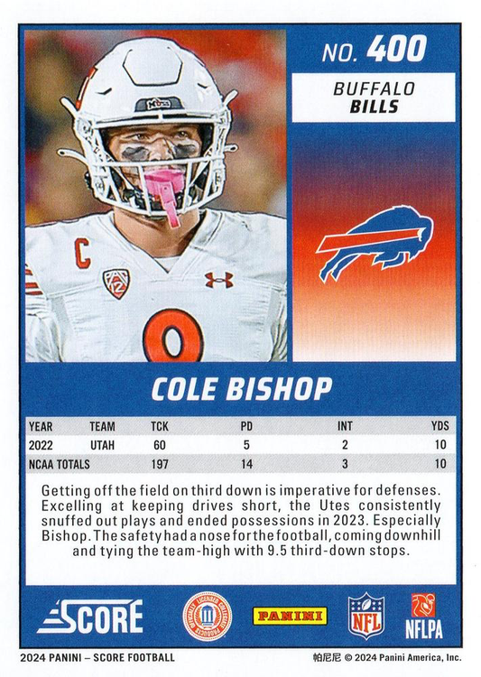 2024 Panini Score Football Cole Bishop Buffalo Bills #400 RC