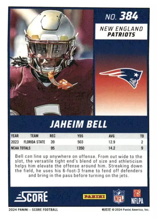 2024 Panini Score Football Jaheim Bell New England Patriots #384 RC