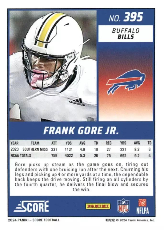 2024 Panini Score Football Frank Gore Jr. Buffalo Bills #395 RC