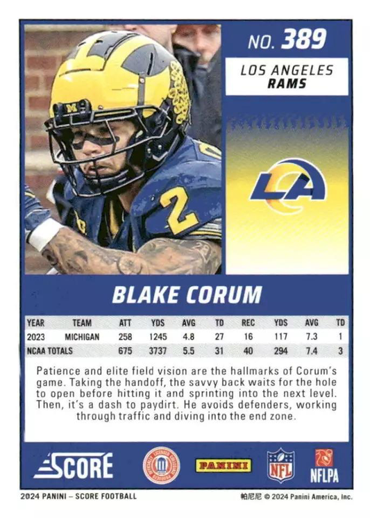 2024 Panini Score Football Blake Corum Los Angeles Rams #389 RC