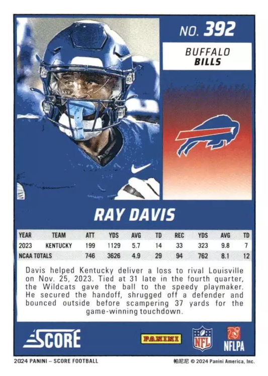 2024 Panini Score Football Ray Davis Buffalo Bills #392 RC